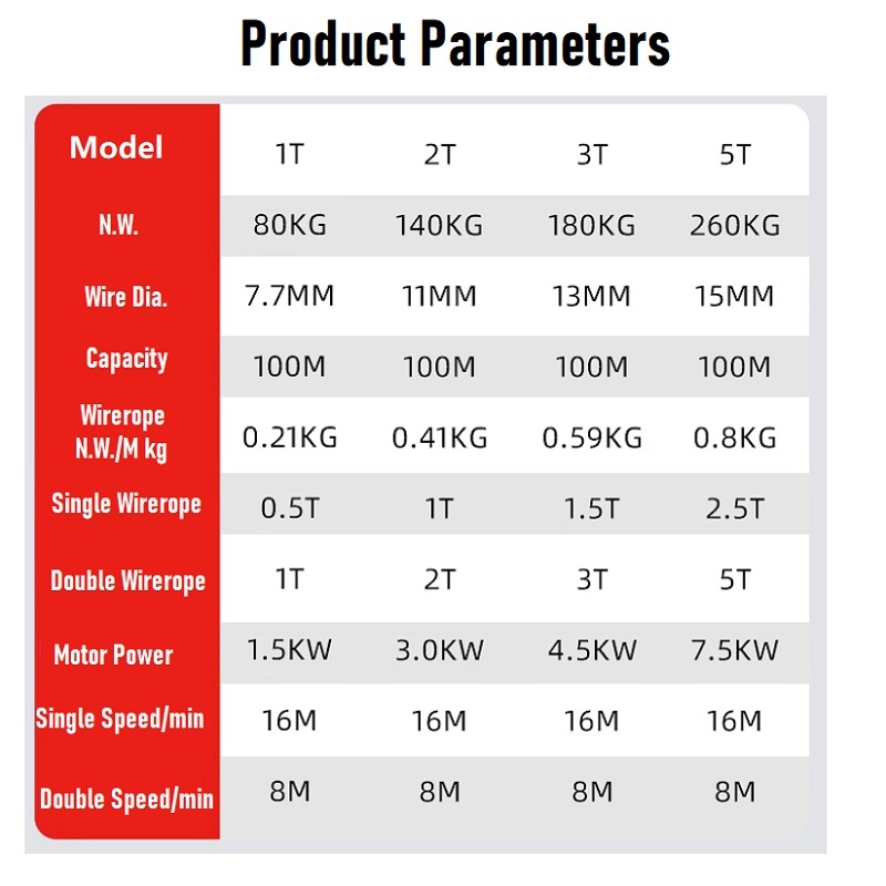 Safety Devices: Standard equipment includes overload protection, travel limit switches, emergency stop switches, anti-falling protection for motors, and audible/visual alarms .