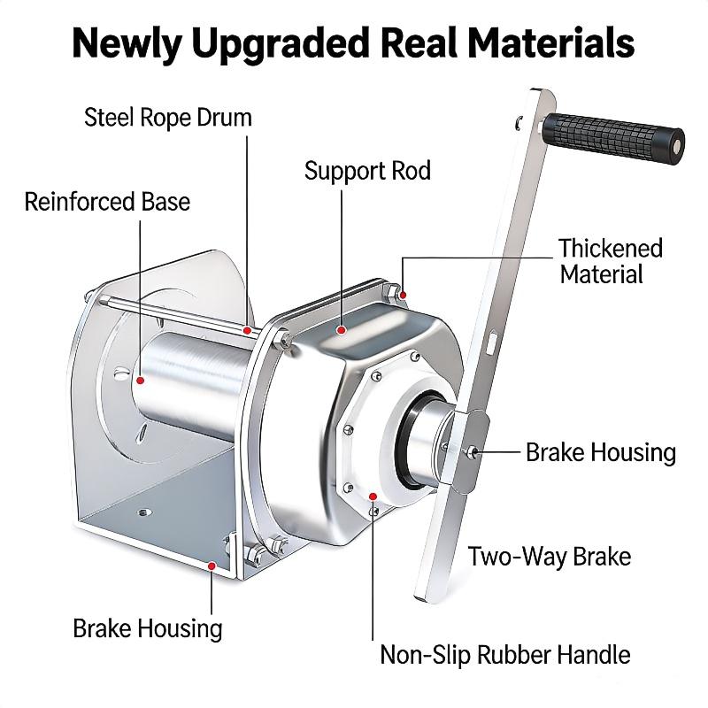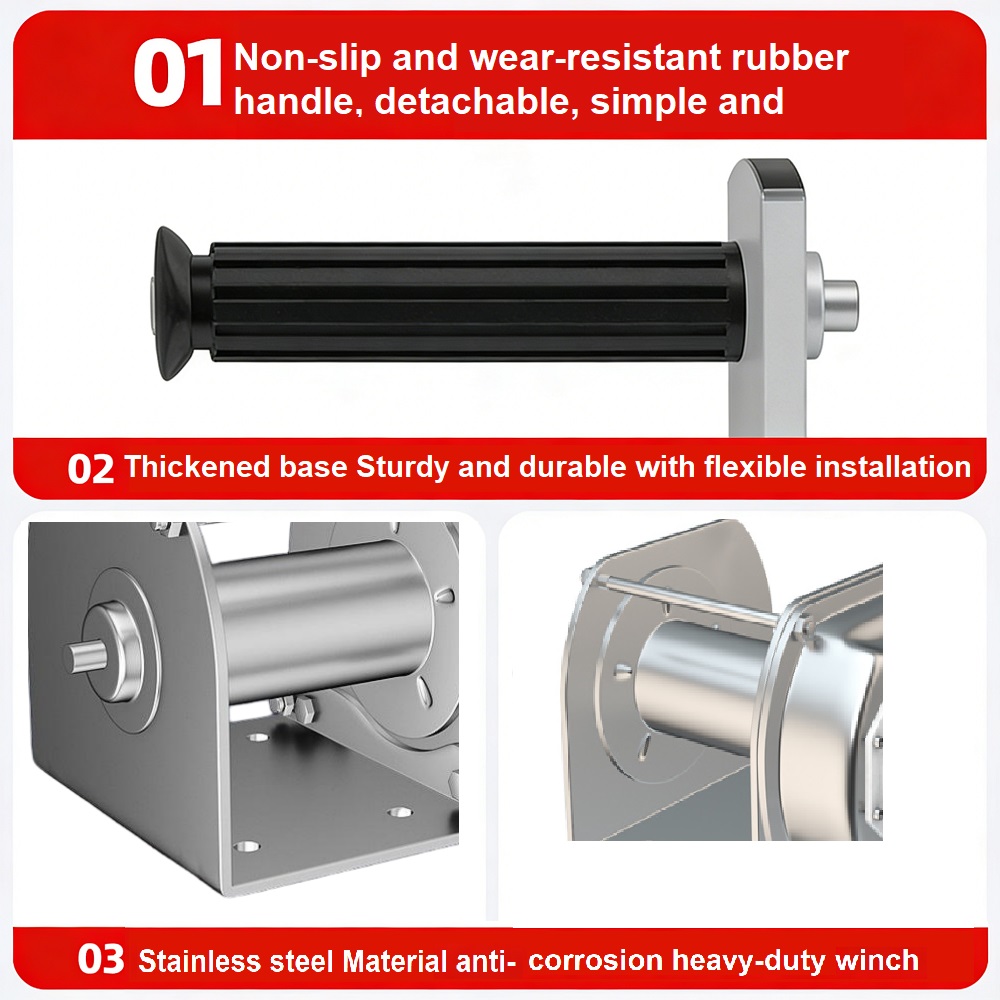 Premium Stainless Steel Construction: Made of high-quality 304 stainless steel, the winch body, gears, and key components offer superior corrosion resistance, rust proofing, and wear resistance, ensuring long-term service in harsh environments such as marine, coastal, or outdoor settings.