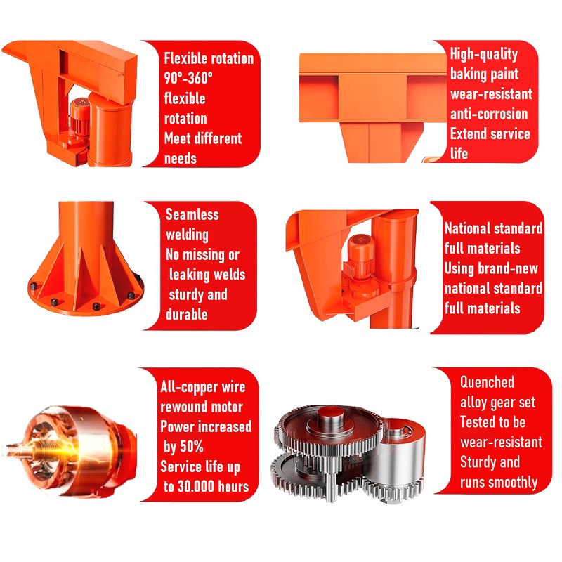 ·  Flexible & Precise PositioningThe jib offers 90°–360° smooth rotation, with a built-in pressure bearing in the rotating column to ensure stable, friction-free movement even under heavy loads.