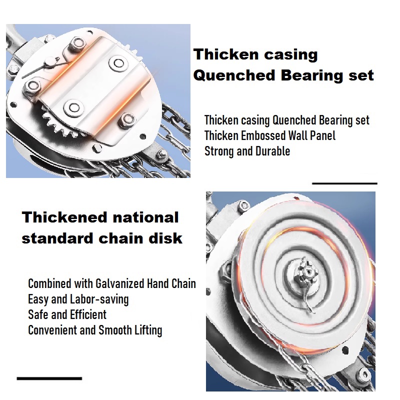 Paired with a galvanized hand chain, the thickened standard chain disk enables smooth, labor-saving pulling—eliminating chain jamming for consistent, convenient operation.