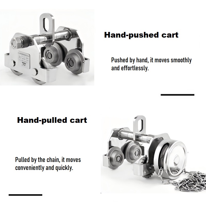 Hand-pulled trolley: Operated via a chain for convenient, quick movement, suiting larger-span position adjustments.