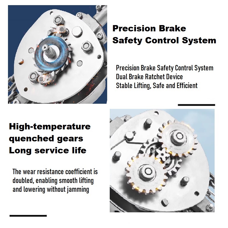 4.Equipped with a dual brake ratchet device, this system ensures stable, slip-free lifting and efficient load control, significantly enhancing operational safety.