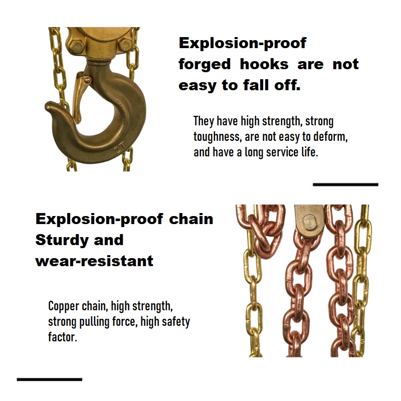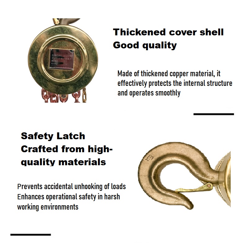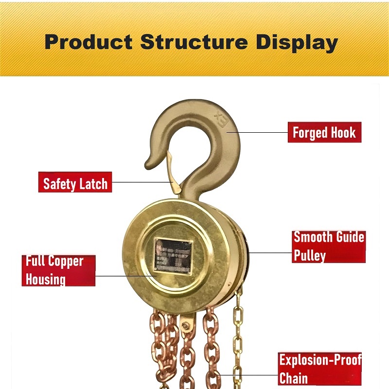 البناء القوي والمتين: خطاف الصلب المتشكل، والسلسلة المتخصصة المضادة للانفجار، ومبيت النحاس الكامل مع تعزيز أكثر سمكا يضمن مقاومة للصدمات، والتآكل، والتشوه، وإطالة عمر الخدمة.