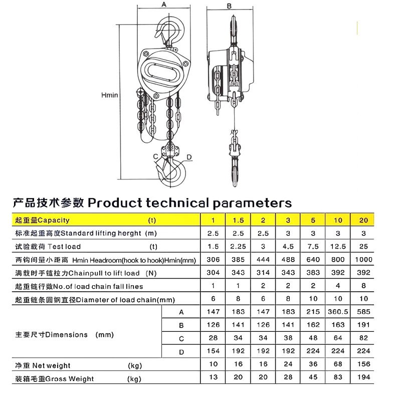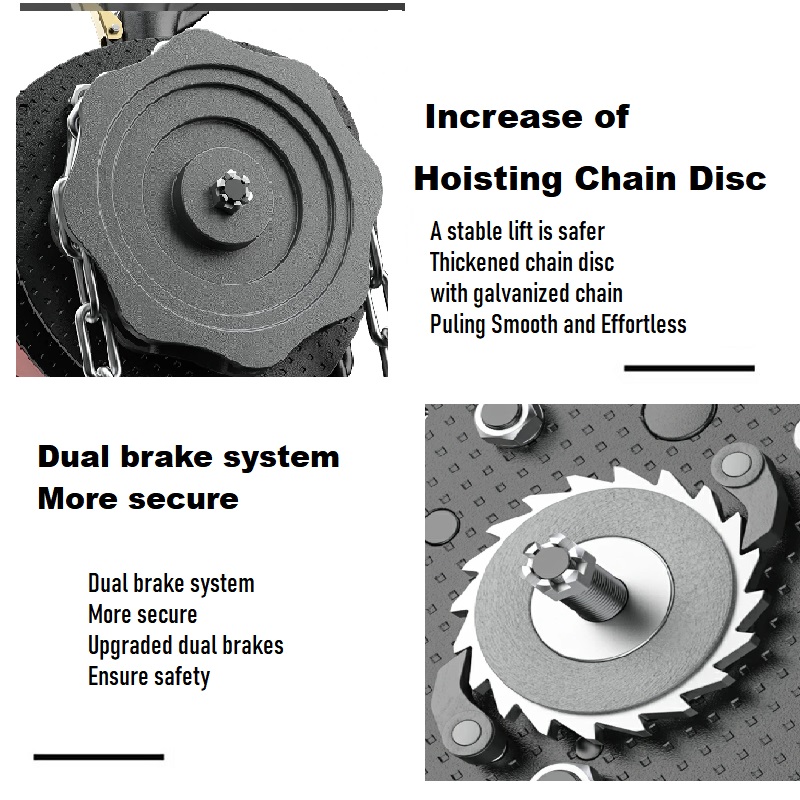 Zuverlässige sicherheitsmechanismen: eingebaute überladungsmechanismen werden eingerichtet, um zu verhindern, dass lift über ihre kapazität hinaus erhöht wird, und um mögliche unfälle, die durch die überlagerung verursacht werden, zu vermeiden Das hochleistungsresorsystem sorgt dafür, dass das gewicht auch dann sicher bleibt, wenn der hebel gelöst wird, und nutzt dabei eine doppelte sicherheit für den kronenblock.