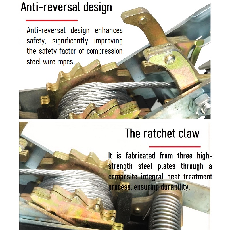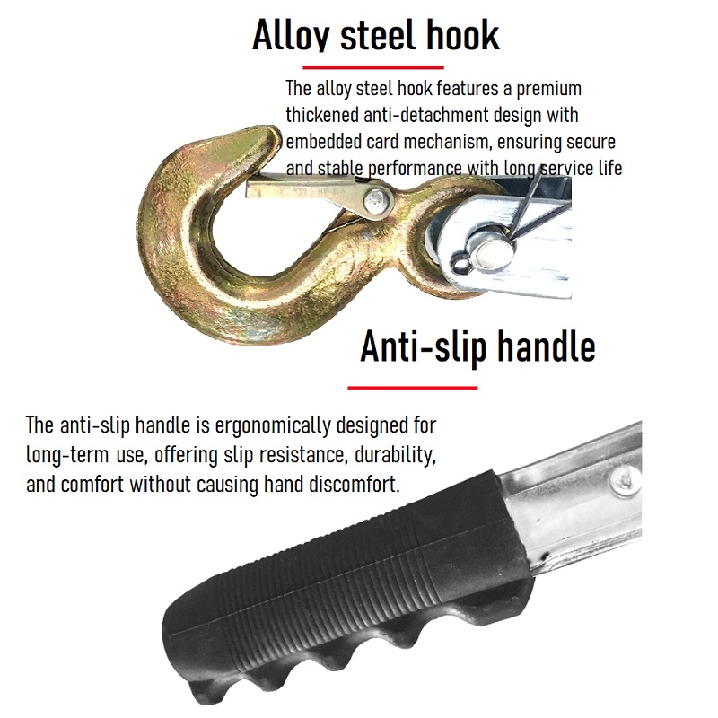 · 노동력을 절약하는 작동:라쳇 메커니즘은 최소한의 노력으로 정밀한 텐션을 가능하게 하며, 인체공학적 손잡이는 편안함을 보장합니다.