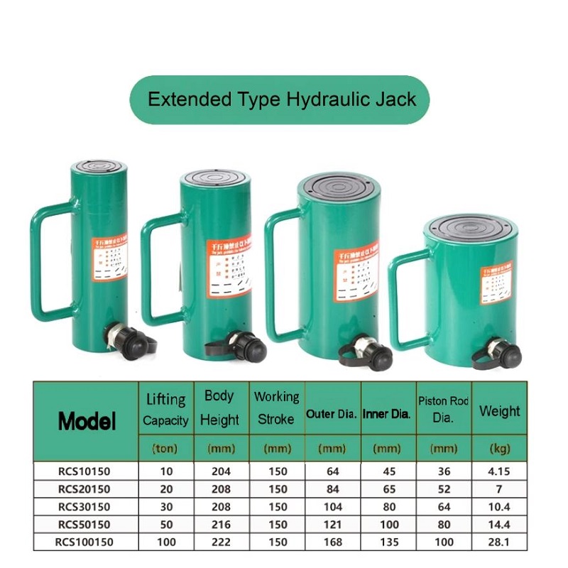 Extended-Stroke Jack: 150 mm Stroke with a body height of 204-222 mm, được thiết kế cho các hoạt động nâng đường dài.