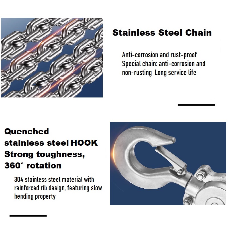 Application: Designed for hoisting, positioning, and moving heavy loads in industrial, warehousing, and maintenance scenarios—especially suitable for humid or corrosive working conditions.It operates manually via a hand chain, leveraging precision components to balance safety, efficiency, and ease of use.
